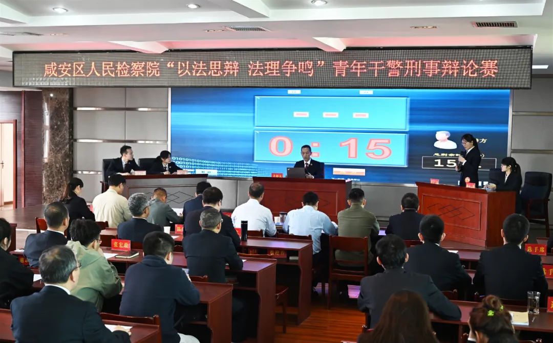 今年 4月18日,一場主題為“以法思辨 法理爭鳴”的刑事辯論賽在咸安區檢察院9樓會議室激情上演,該院20名選手通過立論陳詞、雙方自由辯論和總結陳詞三個環節開展激烈辯論,展現出青年干警扎實的法律知識儲備、縝密的邏輯思維和機敏的反應能力。此次辯論賽,是該院落實省、市院“抓落實、求極致、強作風”專項整治活動和全省檢察機關刑事檢察部門抓基礎、強素能、提質效“個十百千”活動的部署,旨在加強青年干警和刑事檢察隊伍專業素能建設。